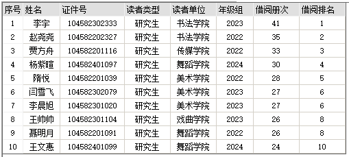 研究生读者借阅之星